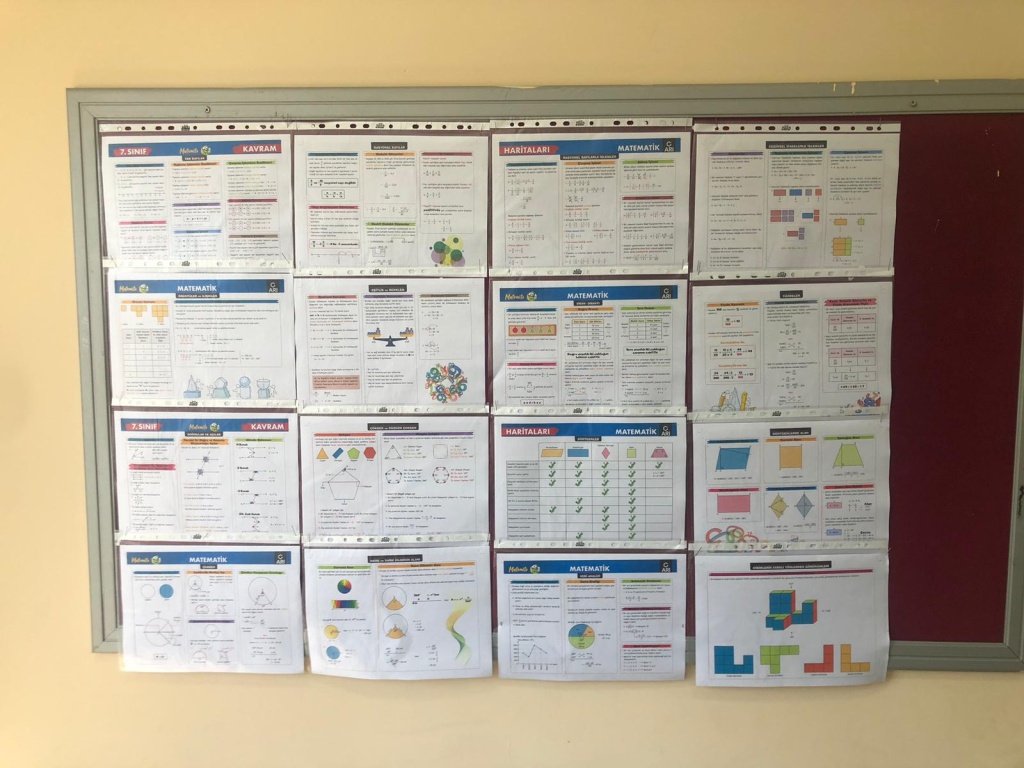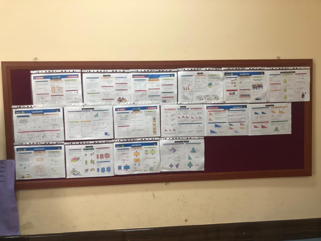 Matematik derslerimizde gördüğümüz ve göreceğimiz konularımızın Kavram Haritalarını panolarımıza astık. Öğrencilerimizin teneffüslerde göz gezdirip konu tekrarı yapmaları dileğiyle.